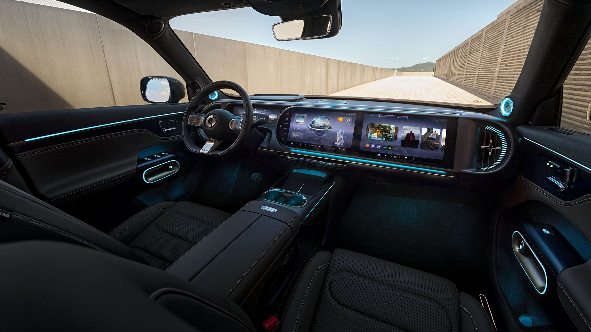 Smart #5:n matkustamo on suunniteltu tarjoamaan huippuluokan mukavuutta. Pehmeät materiaalit, matalalle sijoitettu lattia ja reilu jalkatila luovat rauhallisen ja avaran premium-ilmapiirin. Takaistuimilla nautitaan lämmityksestä ja sähköisesti säädettävistä selkänojista. Vakiovarusteisiin kuuluvat suuri panoraamakatto sähköisellä aurinkosuojalla, tyylikkäät LED-lukuvalot sekä tunnelmavalaistus, joka on säädettävissä 256 eri värisävyyn. Kaikki istuimet ovat laajasti säädettävissä, ja tila mukautuu vaivattomasti myös lepo- tai makuuasentoon.