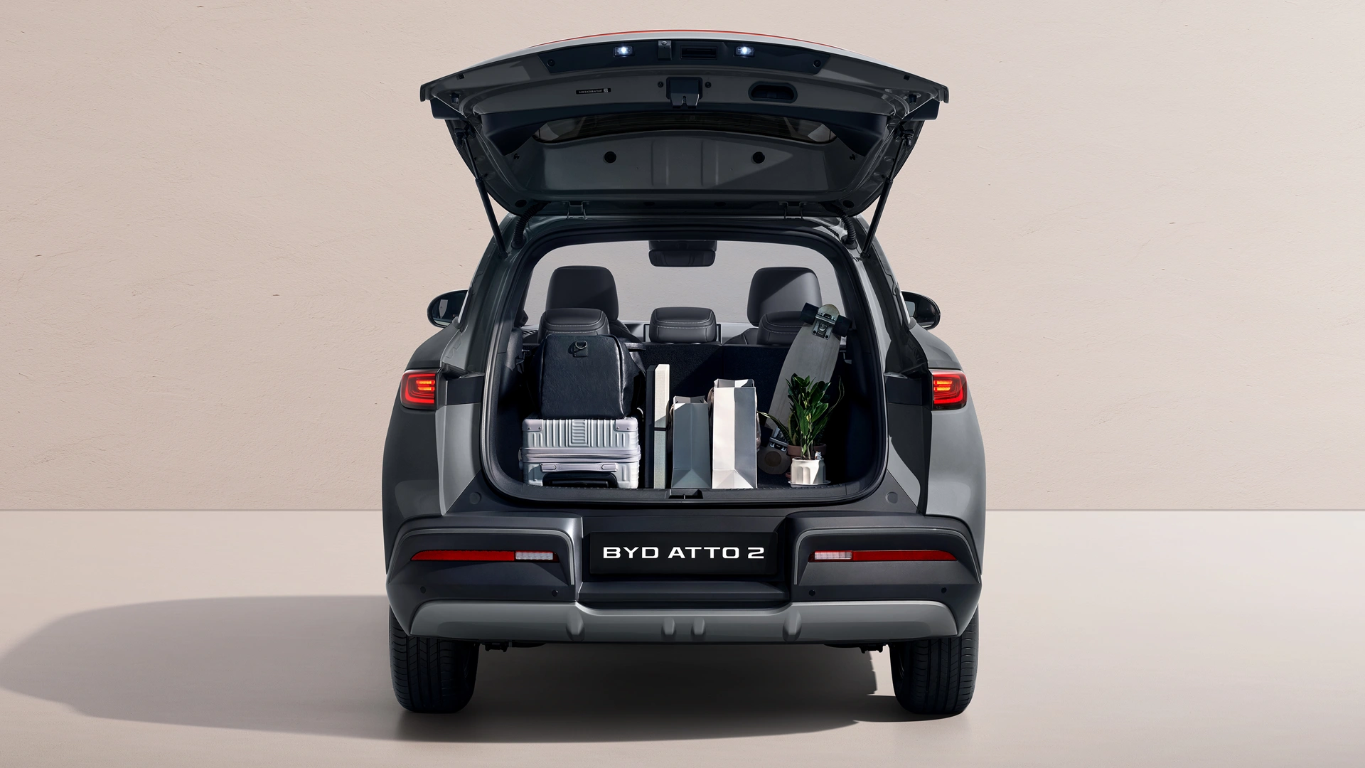 Kompakteista ulkomitoistaan huolimatta BYD Atto 2 Comfort on tilava ja avara. Tavaratilan koko on perusmuodossa 450 litraa, ja takaistuimen taittamalla se kasvaa 1 340 litraan. Auton toimintamatka on jopa 430 km (WLTP) ja tehoa löytyy 204 hv.